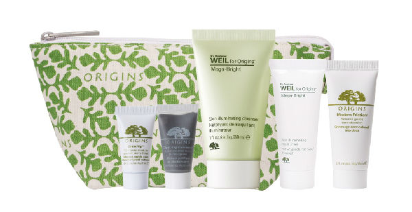 Dr. Andrew Weil for Origins™ 极亮明肌美白洁面乳 30ml Modern Friction™ 白米焕肤霜 15ml Drink Up速效紓渴水份面膜 7ml Clear Improvement活性炭深层清洁面膜 7ml Dr. Andrew Weil for Origins™ 极亮明肌美白水润面霜15ml Origins限量版多用途化妆袋 乙个