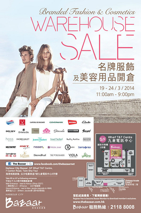 香港优惠:海港城Bazaar名牌服饰及美容用品展(2014年10月8日-13日)