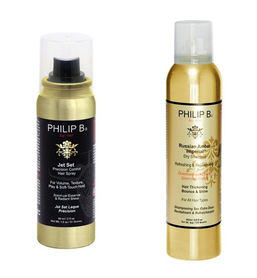荷里活星级发型大师Philip B,致力从世界各地发掘高质素的天然成份,为发丝打造如明星般的形象。深受爱戴的皇牌产品俄罗斯皇家琥珀干洗发喷雾Russian Amber Imperial™ Dry Shampoo及航空细緻定型喷雾Jet Set™ Precision Control Hair Spray推出全新升级版,换上华丽的黄金包装,更贴合名人的显赫尊贵。
