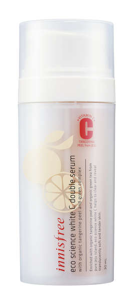 1.innisfree Eco Science White C Pore Double Serum含有机柑橘皮萃取物,提供高效抗氧美白营养,薄荷萃取物则有平衡肌肤油分。