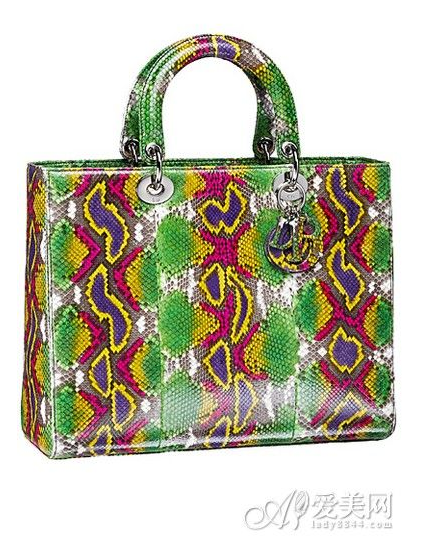 迪奥(Dior)2014春夏系列包包彷如一个浪漫的热带花园,绚丽又活力四射。经典款被赋予全新演绎,结合如花卉般春意盎然的缤纷色系,让原本冷艳高贵的蟒蛇纹多了一份青春活力。