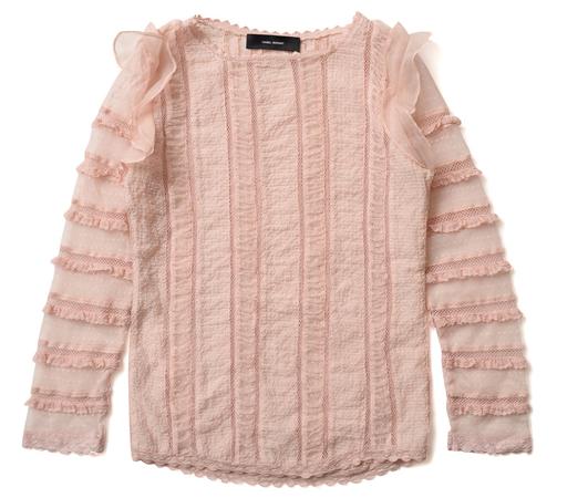 ISABEL MARANT的设计总是带着一份法式的特有魅力,用多种布料,精致的制作工艺,刺绣,串珠等技巧,诠释着它的时尚理念。今季ISABEL除了有一贯的黑、白色外,BABY PINK亦成为主色调。跟其PRE COLLECTION一样,系列非常强调有透视感的设计,用上LACE和薄纱等物料为系列增添透视女性线条的效果。款式方面,巧妙地运用了许多男性化的剪裁和物料对比,延续品牌设计在MASCULINE及FEMININE之间的平衡感。蕾丝与皮革、蝴蝶结与铆钉等一个个看似矛盾的组合却配合得天衣无缝,在好坏女孩之间表现得游刃有余,干练率性中不失柔美和妩媚。