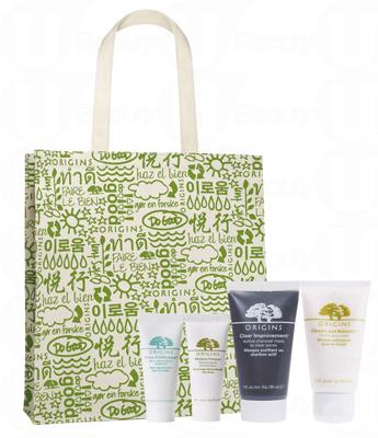 凡于全线店铺购买正价产品HK$ 800,即可获赠上图之旅行套装。环保购物袋以100%再生棉制造,由Origins 创作总监Melissa Knapp设计,灵感来自她在旅行时对大自然的感受;袋上更印上「Do Good」、「悦行」等的8国语言版本,带出环保必须身体力行的全球讯息,亦同时提醒大家善用环保购物袋。