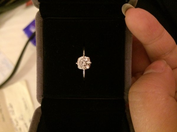 我坐地铁铜锣湾C出口周大福买钻戒,看到预留款就感觉很赞,只是女人购物的特点喜欢对比,所以又麻烦亲帮我找了好几款,对比3C,色,款式,因为我要购买个钻戒,并且要直接改圈拿货所以把莉莉的下班时间都耽搁了,她们家的小宝贝都打电话来催了,不好意思了。