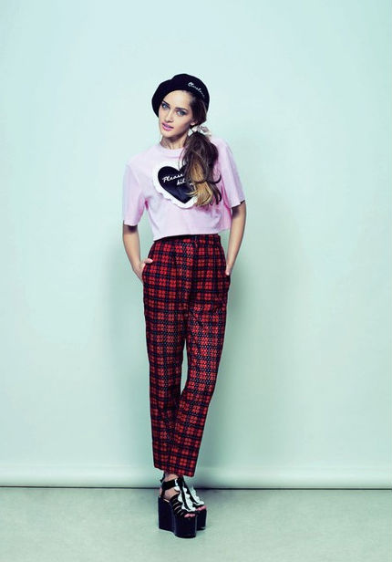 GVGV 春夏系列灵感来自1995年美国经典喜剧电影«Clueless(独领风骚)»中热爱时装的女学生。设计师MUG 呈现出90年代疯狂追求时尚的女大学生形象,表现出当时潮流的浮华风气。系列以粉色系为主,包括粉蓝、粉紫和粉橙色等,充满春日活力。图案方面则有Tartan Check、心型和象征啦啦队的蓝球和大型字母图样,点出校园主题。