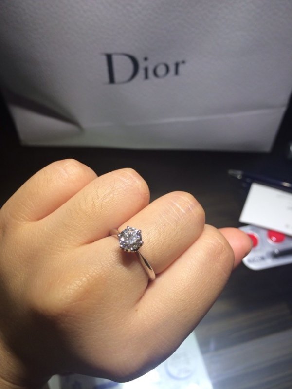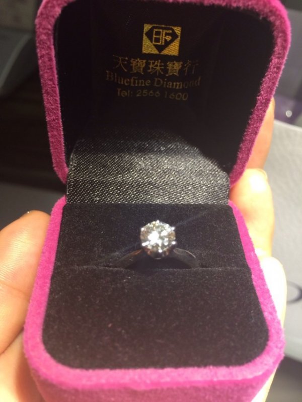 BLUE宫老板人很好 很耐心 这是我们非常开心愉快购物的一个重要原因。先是询问我们的预算以及要求,就拿了一颗70分,F,VVS2,看我没什么感觉就又拿来了一颗77分,F,VS1,出去对80分以上的好奇,老板又正好说有货 我们就想看看膜拜一个82分的闪闪是什么样子的 (好屌丝) 结果宫老板一拿出来 我就知道这颗闪闪就是我的了 某屌丝也有心动的感觉 因为上了80分以上的闪闪货很少,价格也就贵些了 我们这个闪闪是82分,F,vs1,none! 超预算了,只能牺牲某屌丝说的订婚礼物包包留在了LV的柜台,但是为了闪闪值得了,包包可以以后再买!