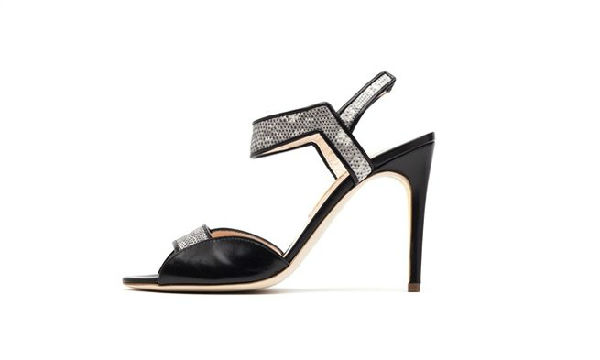 黑色闪亮皮革高跟凉鞋 ($6,980)