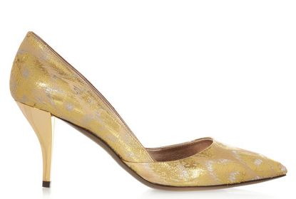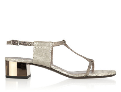 设计师 Alber Elbaz 推出的 Lanvin 2014 春季系列重点展现了高光泽面料令人心情愉悦的神奇正能量,金银丝面料和缎布在其发布会秀台上大行其道。其中的一件亮粉色衬衫配半身裙套装和一件黑色连身裤更让我们爱不释手,理所当然列入了本网站精选的产品阵容。Lanvin 双金属色仿蛇皮皮革凉鞋
