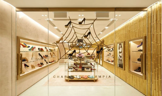 新锐设计师Charlotte Olympia Dellal的同名品牌Charlotte Olympia的亚洲第一间独立门店近日在香港置地广场(The Landmark)开业。门店的橱窗内有一只标志性的金色蜘蛛,店内装饰有镜壁和豹纹座椅区。