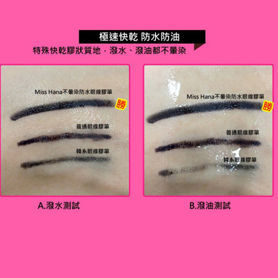 防水性佳好缷除:长时间防汗、 防油、防泪水, 24 hr不脱妆、不晕染。