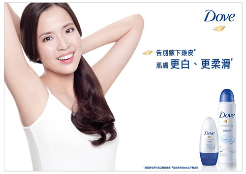 Dove润肤乳止汗香体喷雾及Dove止汗润肤走珠香体露為止汗產品带来新方向,针对腋下因脱毛受损而出现鸡皮、暗黑肤色等情况,两款產品清爽止汗之餘,并蕴含1/4乳霜及维他命E及F**,独有滋润配方修复脱毛后受损肌肤,让肌肤更美白更柔滑,效果比另一品牌更快*,速效告别腋下鸡皮,清爽止汗48小时同时滋润腋下肌肤,防止汗水和细菌带来的汗臭味。