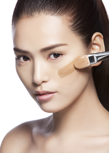 凹陷疤痕是皮肤真皮层及皮下组织缺损而造成的伤疤,不容易修复,但可以用彩妆遮盖。需要在疤痕处叠加3个产品:先后是颜色较淡的粉底(或遮瑕膏),深色粉底和散粉。用浅色粉底填补疤痕的凹陷后,用一枝干净的刷子淡化疤痕的边缘,避免突出疤痕的轮廓,再用一枝化妆刷把遮瑕膏(或者深色粉底)扫在疤痕边缘,有必要时用调色粉底平衡颜色,最后再用散粉定妆。