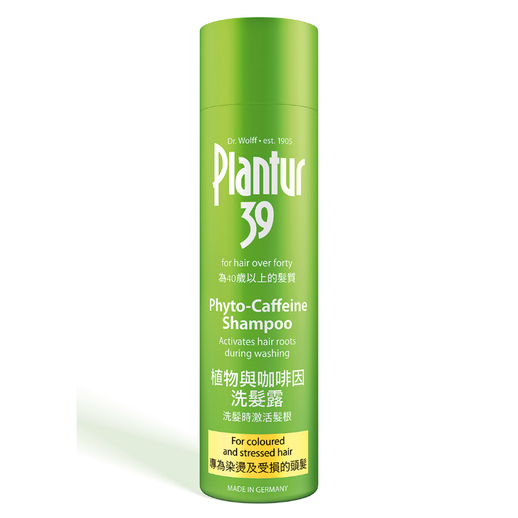 Plantur 39 植物与咖啡因洗护系列利用植物与咖啡因复合物,為头发提供能量。当中微小的咖啡因分子及白茶萃取精华能够透过皮肤的表层直达发根,促进秀发再生和增强头皮的抵抗力。配方同时蕴含锌和淤酸,帮助激活毛囊。除此之外,系列亦推出毋须冲洗的 Plantur 39 植物与咖啡因头发液。每天於头皮上使用数滴头发液,再轻轻按摩头皮,直接渗透至发根,可有效巩固及修复秀发。