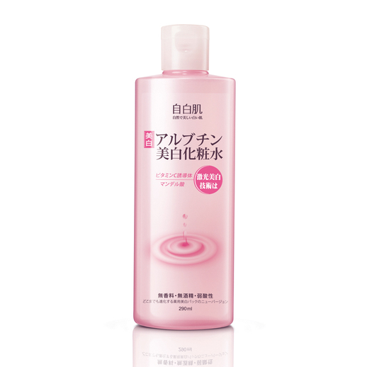 自白肌以「自然.白皙.美肌」為宗旨,将日本医美成分融入產品,為肌肤提供经济却高效的净白美肌体验。其熊果素激光美白化粧水蕴含医学美白成分 α-熊果素及 β-熊果素,加上提升代谢的杏仁酸及强效修护成分-维他命 C-AA2G,配合专利镭射光阻黑因子,改善黑色素沉淀之餘亦有效赶走已沉淀的黑色素,去除面部暗哑问题,令肌肤回复光泽净白,效果可媲美美容院的美白激光疗程,却同时具备温和不刺激配方,敏感肌肤也可安心使用。