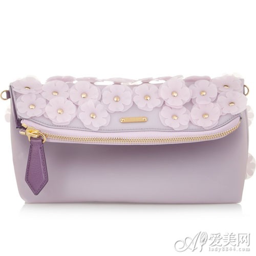 糖果色调、花卉图案和对比纹理是Burberry Prorsum2014春季系列的几大元素。这款“Petal”淡紫色PVC手拿包点缀着立体花朵造型缀饰,看似小巧,实则容量充裕。不妨仿效时装发布会造型,将其握在手中;亦可安上可拆卸皮革肩带,将其挎在肩上。