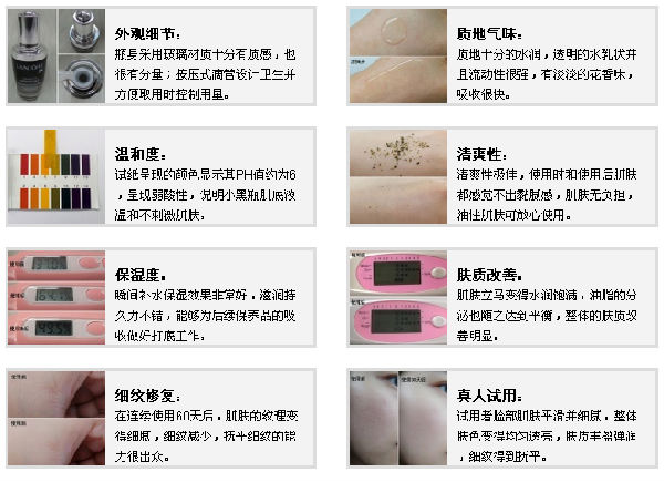 评测方法:让试用者使用兰蔻新精华肌底液30天后,观察并触摸以感知肌肤的改善状况。