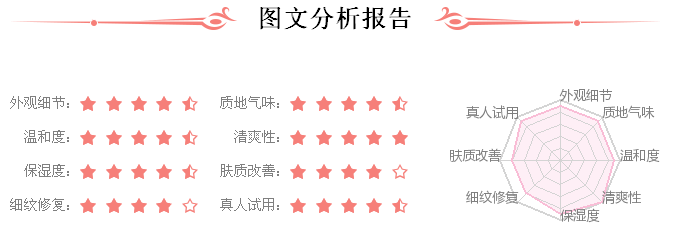 评测方法:用水分测试仪进行脸部肌肤产品使用前后的含水量测试,对比产品使用前后,以及使用3h后肌肤的水分含量数值,根据数值差值大小来评定产品的保湿性、滋润度是否优秀。