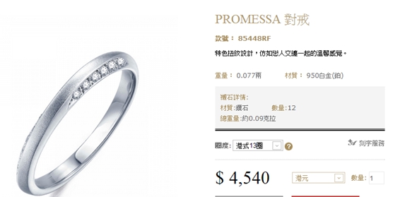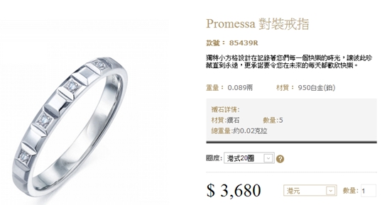 香港购物热荐:周生生婚戒对戒6月最新HK报价