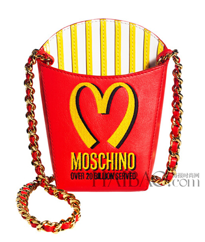时尚从来都与年龄无关,莫斯奇诺 (Moschino) 2014秋冬“快时尚”链条包更能达到减龄功效。夺人眼球的个性设计俏皮有趣,明亮的红黄对比碰撞出浓浓的童趣意味。可乐杯链条包以柔软的压纹皮质杯盖提升手感,薯条包的趣味设计吸引无数眼球,巧妙运用卡通图案的儿童套餐盒更是让人爱不释手,俏皮、童趣、个性、时尚在莫斯奇诺 (Moschino) 快餐链条包中彰显得淋漓尽致。