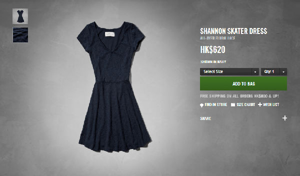 香港购物热荐:Abercrombie & Fitch 2014新款连衣裙HK报价