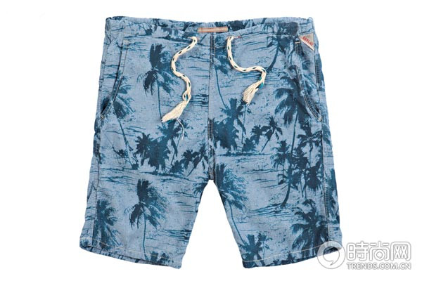 另有印花图案短裤,婆娑的棕榈树的剪影让人仿佛徜徉在迷人的沙滩海景中。