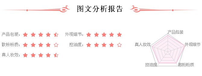 将产品用于右脸颊肌肤,同样状态下2小时后,用吸油纸进行测试,左脸颊出油度明显多于右脸颊,而右脸颊几乎很少出油。可以看出这款散粉的控油度很显著。