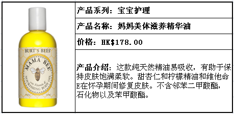 Burt's bees小蜜蜂已經成為了世界知名的天然護膚品牌。它家的王牌产品“小蜜蜂紫草膏”家具必备,老幼适用!宝宝呵护系列也是深受妈妈们青睐,100%纯天然!(仅供参考)