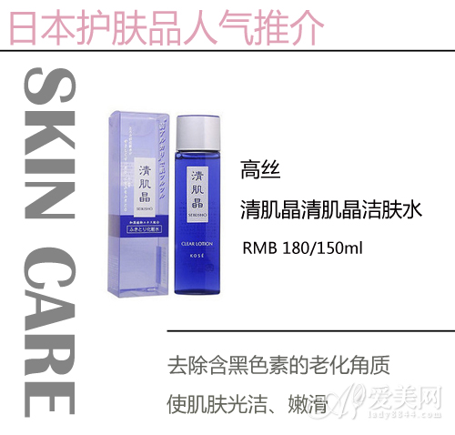 编辑推荐理由:高丝清肌晶清肌晶洁肤水能够去除含黑色素的老化角质以及肌肤污垢,使肌肤光洁、嫩滑。这款洁肤水很特别,是很滋润的具有浓稠感的“乳状”水,用起来肌肤觉得很舒服,湿湿滑滑的,美白保湿效果很不错哦!