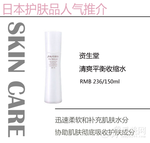 编辑推荐理由:资生堂清爽平衡收缩水专为质感如水般清爽温和的女性而设。能迅速柔软和补充肌肤水分,为肌肤做好彻底吸收护肤成分的准备。这款收缩水气味自然,质地清爽,涂上去很温和滋润不油腻,值得推荐哦!