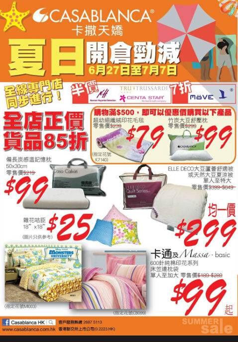 香港优惠:Casablanca 床品夏日开仓激减优惠(至14年7月7日)