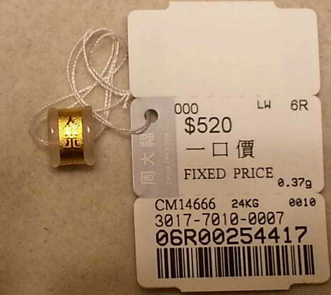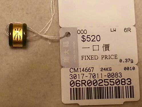 香港周大福新款转运珠 金木水火土金镶玉款 售价520港币