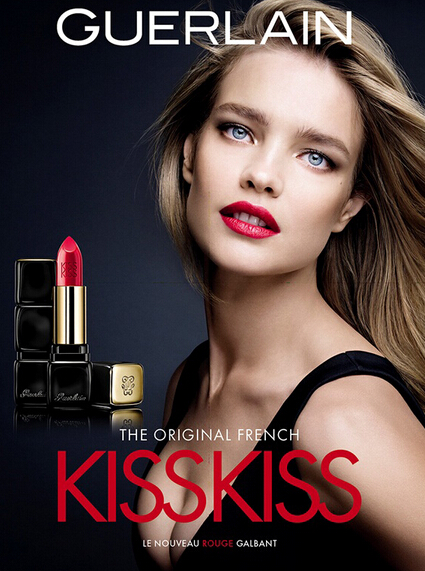 「KISSKISS是一个神奇而讨人欢心的名字,总是以每个女人心仪的颜色点缀着她们的容颜。今日,每个女人手边都应该拥有不止一个诱人的武器,换而言之,妳必须准备好几条唇膏,以呼应自己的穿著与心情。较浅的米色、粉嫩玫瑰色或香槟金,适合清新的晨光;较深的色调则适合午餐的约会;大胆的红色、紫红色或性感的珊瑚色则是属于夜间的色彩。因为只有亮丽的唇色,让妳即使在平庸的日光灯照明下,依然闪烁着带来缤纷闪耀的光采。而娇兰女神谬思纳塔莉,则是KISSKISS最佳的诠释者。只要一支KISSKISS,就能让自己成为魅力无法挡的万人迷,成为光芒万丈的耀眼明星!」