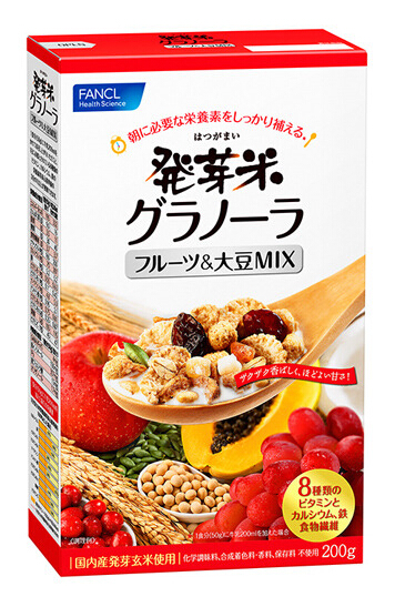 「发芽玄米高纤燕麦片」以优质发芽米及多种穀物製成,配合提子乾、小红莓等多种配料,高纤有营、丰富口感,并能增加咀嚼感,满足食欲,同时為身体补充丰富的大豆蛋白质、膳食纤维、鐡质、维他命B1及C等多种营养。是一种适合一家大小、注重身体健康及体重人士作早餐或小食。