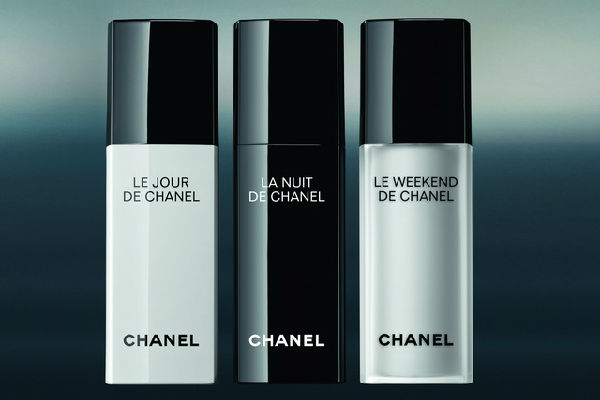 在忙碌的生活节奏下,女性的肌肤容易失衡,疲态尽现。CHANEL首创RESYNCHRONIZING SKINCARE分时保养系列,推出三款护肤產品,包括白色的日间护理LE JOUR DE CHANEL 、黑色的夜间护理LA NUIT DE CHANEL及乳白色的週末护理的LE WEEKEND DE CHANEL,争取女士们最佳的护肤时间。当中蕴含具卓越功效的双重活性天然成份,如刺激细胞代谢的茉莉萃取、舒缓肌肤的乳香萃取及柔润的五月玫瑰水,仿如「拍子机」般,无间断為女性调整肌肤细胞节拍,发放光采四射的完美肌肤。