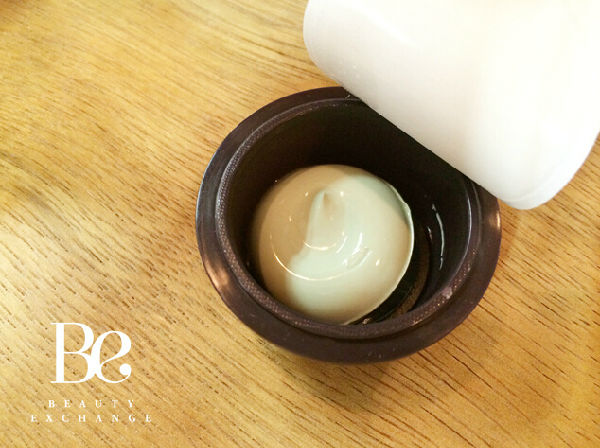 掀起盖子,发现「茶树毛孔清洁面膜」是绿色Cream状的,闻起来有浓浓的茶树油味道,质感比洁面泥细緻幼滑,容易推开,只要洗面及拭乾后厚厚敷上,待10至15分鐘后就可以用清水洗净了。