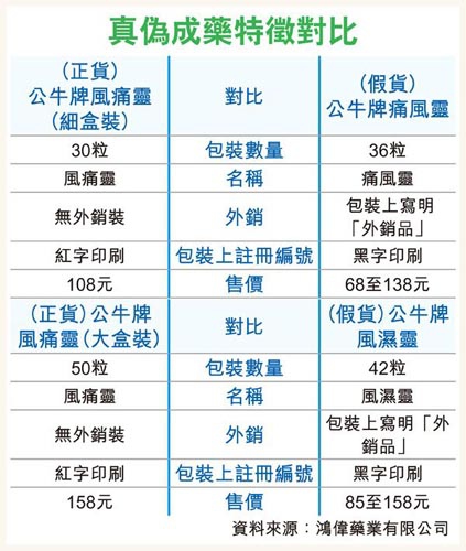 7.痛风灵(正品应为公牛牌风痛灵)