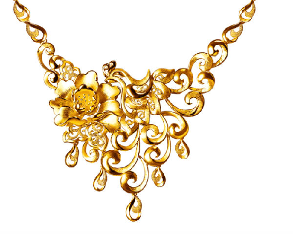 每位父母都希望挚爱的女儿结婚当天美艷动人,盼望她婚后能过著富贵荣华的生活,无忧无虑。这套「喜悦一生」以永不凋谢的黄金打造出充满层次感的牡丹皇,工艺精緻细腻,每片花瓣均有细緻清晰的脉络,将这「百花之王」盛放时雍容华贵、艷压群芳的娇姿完美呈现,衬托出新娘子大家闺秀的典雅气质,散发著国色天香的慑人魅力。
