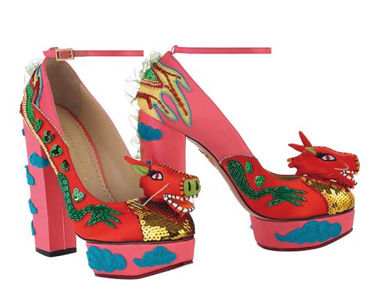 今季主题从中国的古代皇朝汲取灵感,呈献一系列色彩丰富、独特纹理与传统美感的配饰品,实行让大家穿越於沉淀数千年的东方文化里。当中特色作品有如以锦鲤青花瓷为灵感的靛蓝色高跟鞋,显得价值连城;以传统绣花鞋上龙虎舞狮模样作元素的丝绸高跟鞋,缀上华贵的珠片及刺绣,变成了别具传统风味的工艺珍品;还有国宝熊猫的漆皮高跟鞋、象徵帝皇气派的龙图腾高跟鞋及船跟、寓意吉祥的绳结平底鞋、彩色阳伞的高跟靴等,无一不是高贵迷人。至於袋款方面,特色之作包括将羽毛嵌於有机玻璃内的手挽盒、鱼形的陶瓷印花手挽盒、丝绸珐琅手袋及配有真丝流苏及施华洛世奇水晶的灯笼手袋等,将中国特色文化尽情显现。