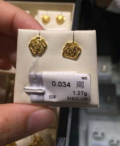 香港周大福黄金耳钉最新款式报价,香港8月1日金价13750 港币/司马两