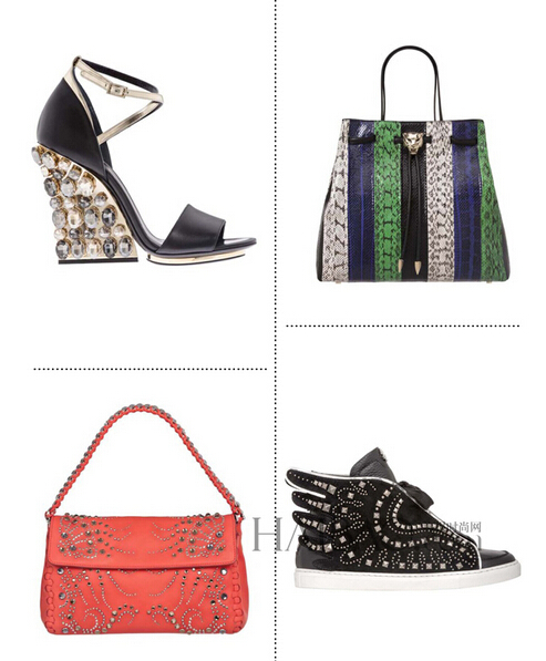 时尚界狂野教主罗伯特·卡沃利 (Roberto Cavalli) 最擅长使用能够凸显女性狂野和性感面的兽纹与印花,并且每一季的新品都能将动物纹的花样翻新。2015早春配饰系列以电影《迈阿密风云》为创作灵感,让热带植被色彩同品牌经典的动物纹印花一同大量出现,并配以宝石、铆钉等元素,充满狂野又个性十足!