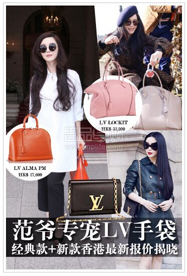 明星上街背的大牌包通常会引起一股热潮,欧美有个贝嫂,可以说是爱马仕狂人,国内同样有个范冰冰与之抗衡。小编不多说大家应该也能猜到,范爷可谓是LV的专宠户,名副其实的LV女郎!她的LV新宠一出现在众人眼前,都会让LV粉们羡慕一把。LV如今价格上涨,会不会掉粉呢?下面,就和MP小编一起来看看2014那些个被范爷专宠的LV新款+经典款手袋价格吧,喜欢去香港血拼的亲们可不要错过了!