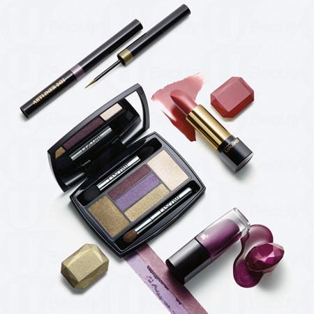 Lancome(兰蔻)今个秋冬以宝石深邃瑰丽的色泽为设计灵感,以孔雀绿、深紫晶作主调,演绎巴黎女性时尚的风情。当中以甲油及眼影组合大玩紫调及暗红色系,由淡到浓的缤纷亮丽色调,尽显优雅魅力。