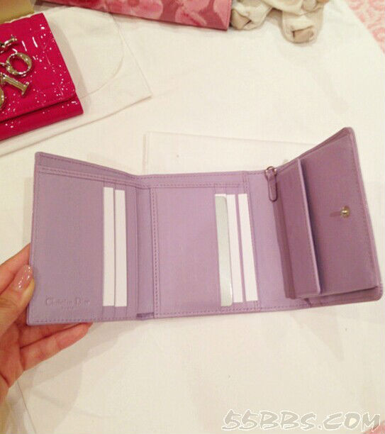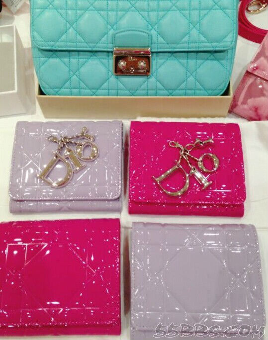 Miss Dior长款钱包,一个翡翠绿,一个玫红色。