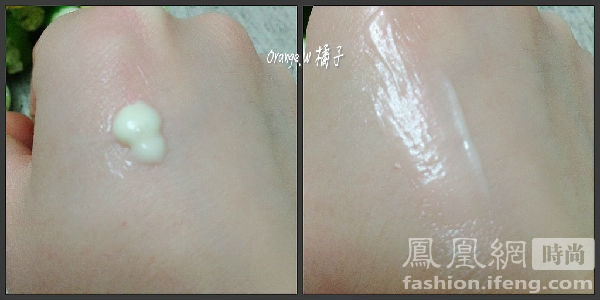 淡黄色乳状,抹开就有点透明的感觉,质地算是比较清淡的,不油腻厚重,闻起来有淡淡香味。
