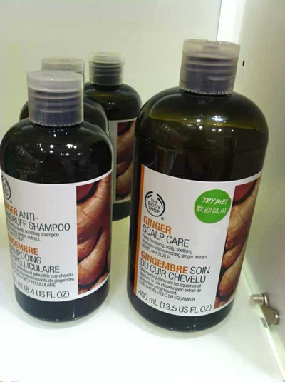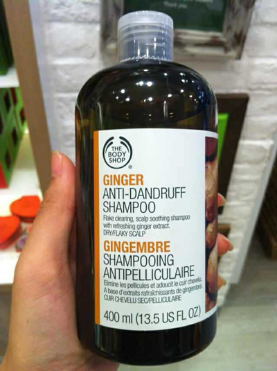 香港the body shop生姜头皮护理洗发露,有效去除头皮屑,滋润头部肌肤,250ml约人民币89元,400ml约人民币119元