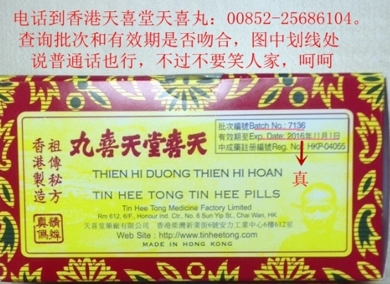 现在香港的天喜丸已经通过电话鉴定都无法鉴定真假了(如果不是最新批次的话,因为最新批次里面的编码,山寨药厂应该不会更新那么快)。