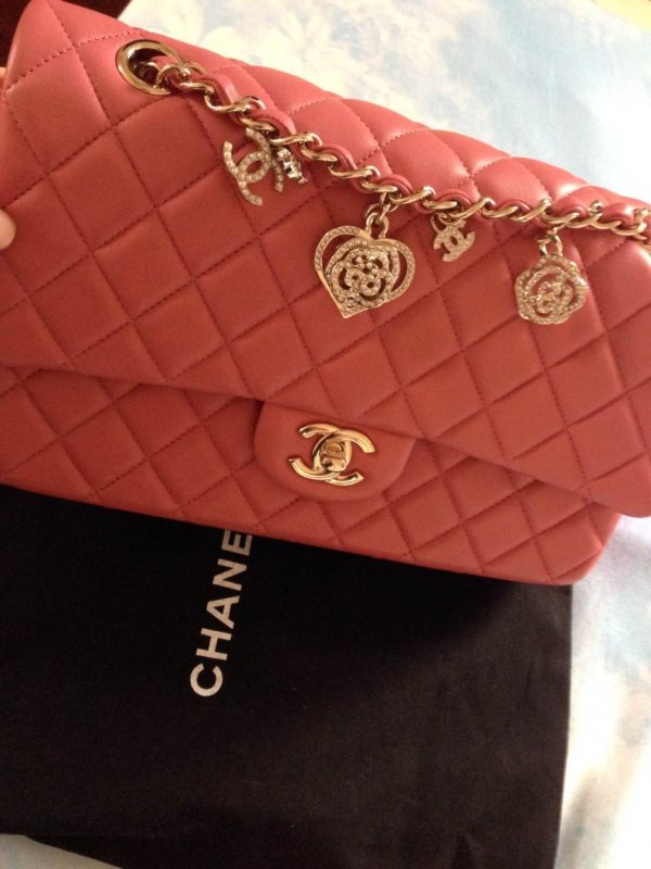 这个很惊喜,2014年情人节限量款,运气很好,路过铜锣湾利园的chanel进去转转偶然碰到的,价格比经典款便宜,今年3月份chanel的经典款,小号HKD40800,大号HKD44300,之后有没有再涨。。我也没关注。买完单的时候,店员说,这是之前客人预订的,约定的时间到了,没来取才拿出来卖的,来早了也没有,来晚了也没有,所以真的是有缘才遇到的。