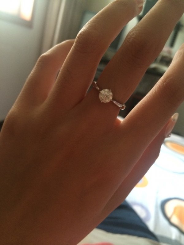 不得不提的是周大福的闪闪,中间虽然很曲折,很纠结,但花了钱能买到最喜欢的那一颗钻石也值得了,我的4c是63分,f,vs1,3ex,none 是不是很大,很漂亮,感谢伍先生,最重要的是谢谢老公!!!