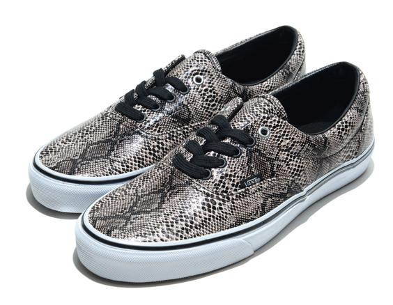 拥有独特质感,并散发出一股矜贵奢华味道的蟒蛇皮革,向来不但深受一众超级品牌的点名选用,以打造出各种有如艺术品的顶级饰物作品,其实一直以来在球鞋领域之中,这种特殊皮革材质亦往往被设计师用於制作各类型的限量版鞋款,当中例子就有早前登场的AIR JORDAN 11 LOW、年初的限量版SUPERSTAR,以及去年的两款ATMOS别注版PUMP FURY,其实亦不约而同透过蟒蛇皮革的独特气派,为鞋款增添一份奢华气息。至於近年逐步把设计方向,从滑板领域转化到LIFESTYLE层面的VANS CLASSICS,本季度亦尝试透过蟒蛇纹理,分别将经典的ERA、OLD SKOOL以及HALF CAB鞋款,注入一份与众不同的豪华风格。
