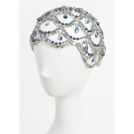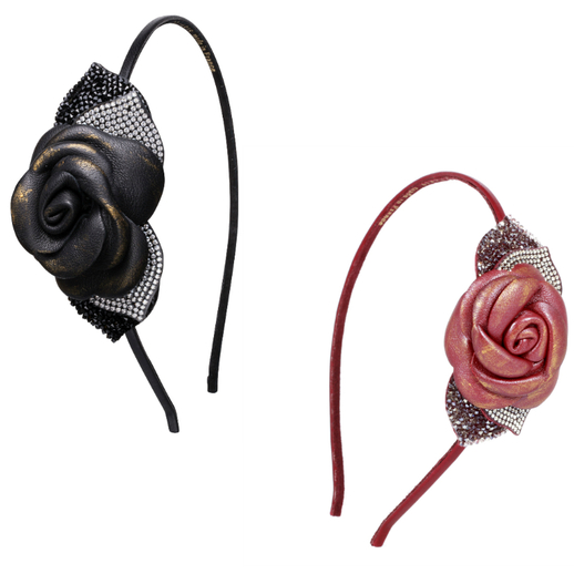 要数来季最奢华的发饰,必定是「巴比伦王朝」发网。发网是意大利全人手缝製,缀满蓝色、银色及灰色的 Swarovski 水晶、水晶珠子和水晶珍珠,加上垂吊的墨蓝色梨形水晶,尽显高贵典雅的气派。而经典玫瑰造型的发箍及发夹统统换上闪亮新装。以小羊皮手缝的玫瑰呈珍珠光泽,配以镶满 Swarovski 立体水晶饰布和迷你圆形水晶的叶片,带出不一样的华美型格。发夹设计更加上野性的蜥蜴皮作叶片,倍添时尚感。